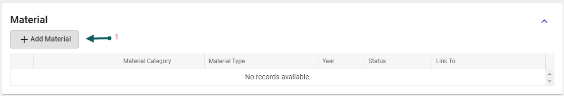In the General Tab > Material section, add a material by clicking the Add Material (1) button.