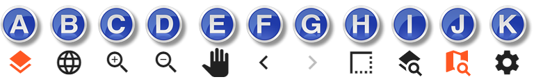 | I - Query Integral Layers | Opens the Query Toolbar, containing various tools for map navigation, executing queries, and measuring geographic features. |