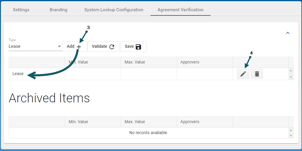 Then enter the Min. Value (5), the Max. Value (6) and select Approvers (7)