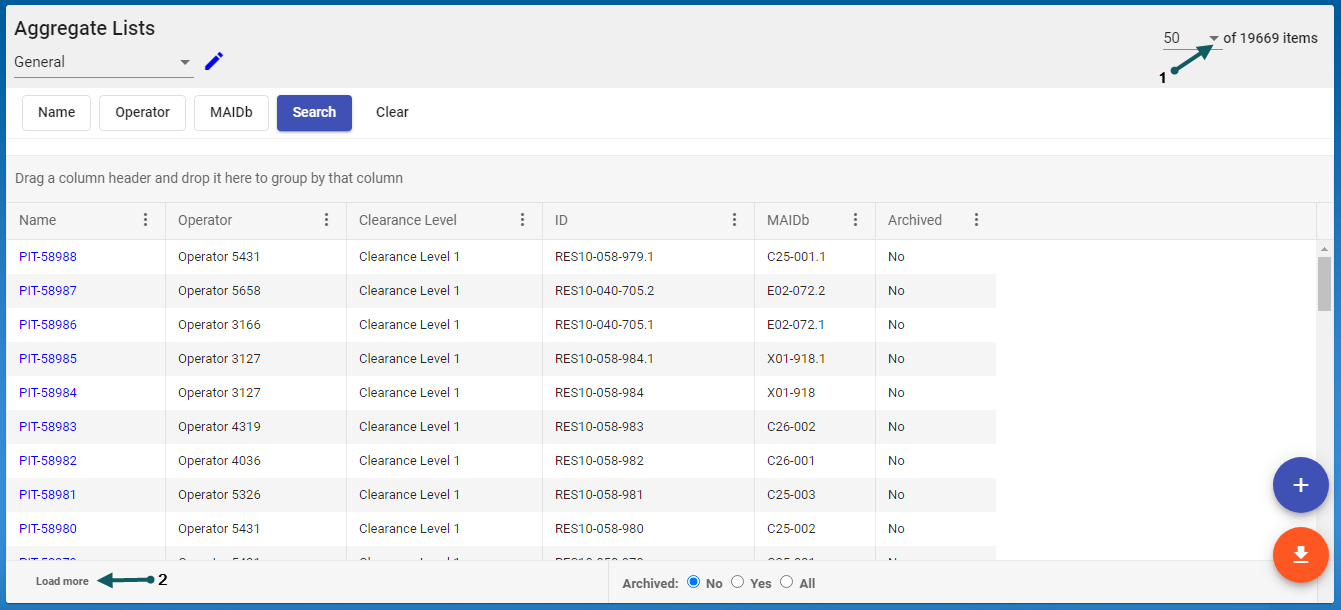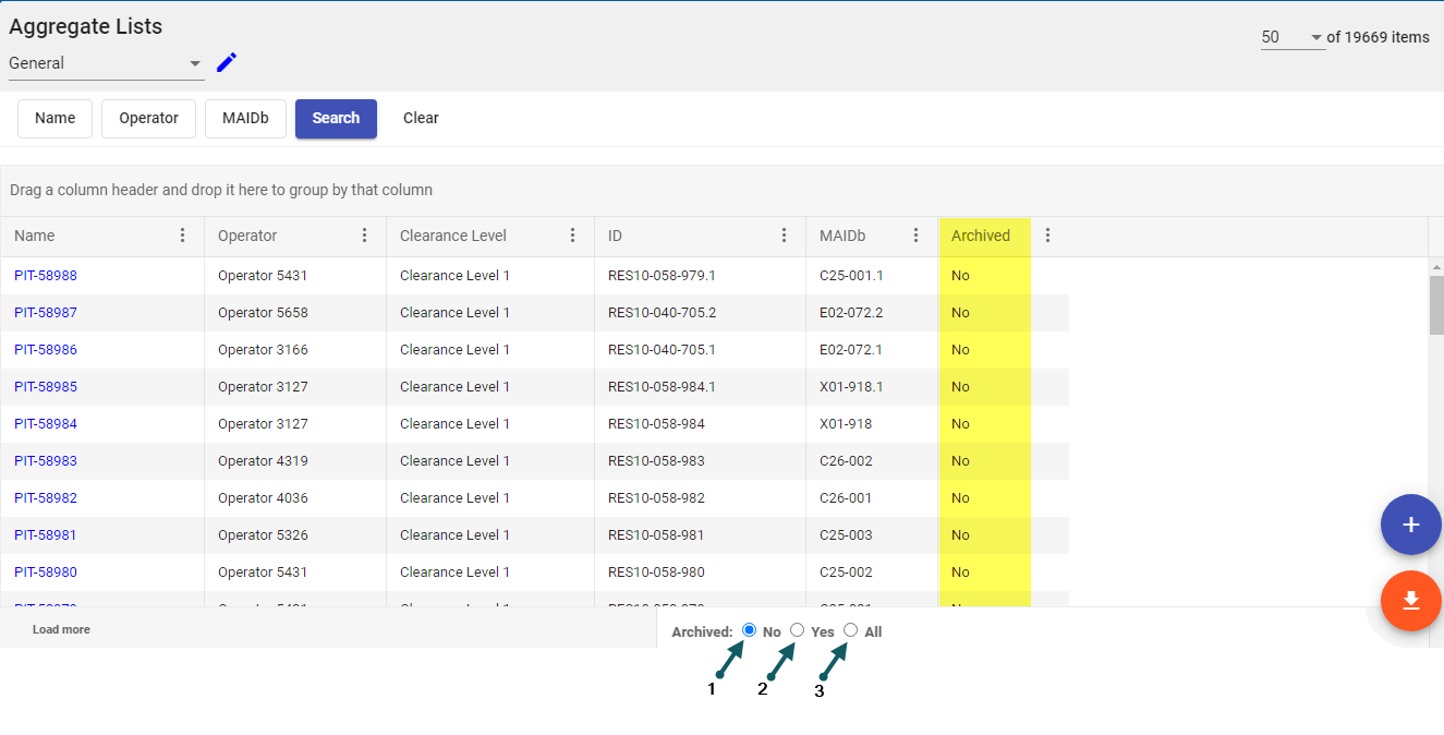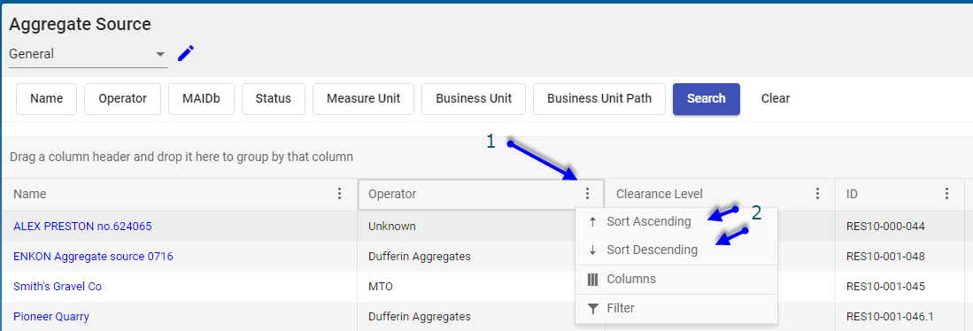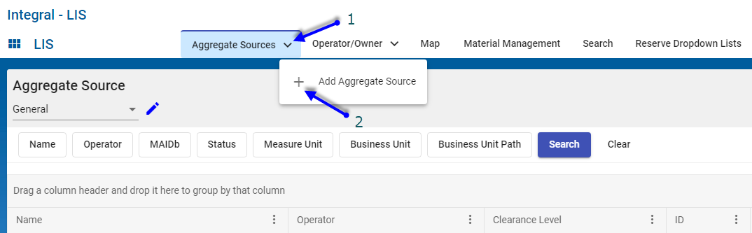 Each Module provides a List View grid of all entries associated with that Module. For example, the Aggregate Source Module will contain one entry in the List View grid for each Aggregate Source defined in the Integral-LIS application.