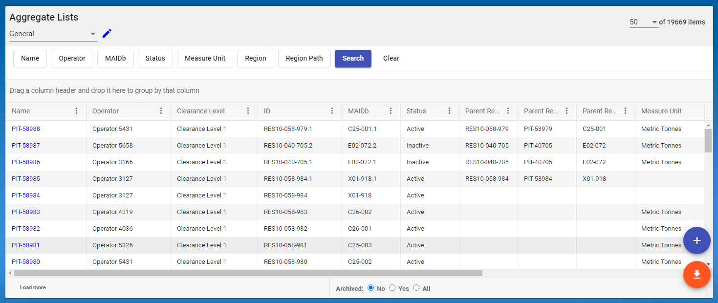 The Module consists of a List View that is used to locate the Aggregate Source of interest and a form to manage the data related to the Aggregate Source.