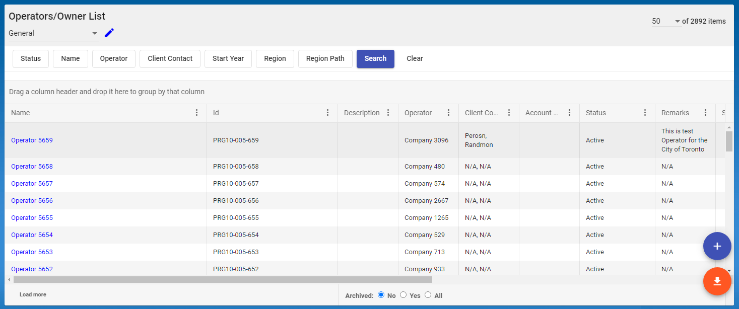 The purpose of the Operator/Owner module is to maintain and organize a list of all operators and owners. Details include clearance level and business unit.