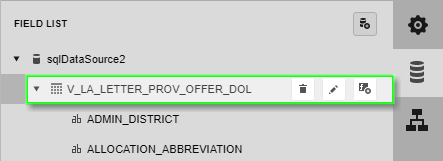 The following actions are available in the Field List for data source customization. To make these buttons (actions) visible, left-click the view in the Field List.