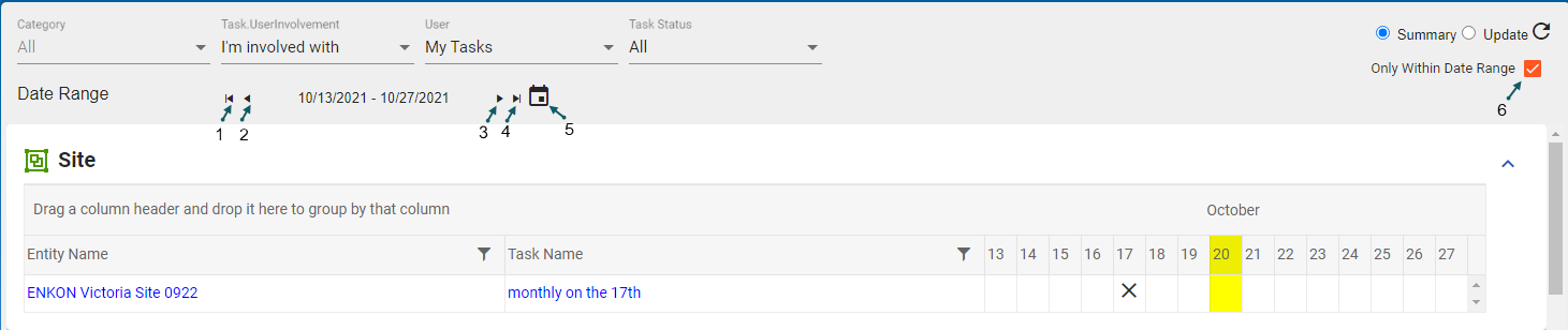Note: The X denotes when the task was due, while the actual completion date is highlighted in yellow.