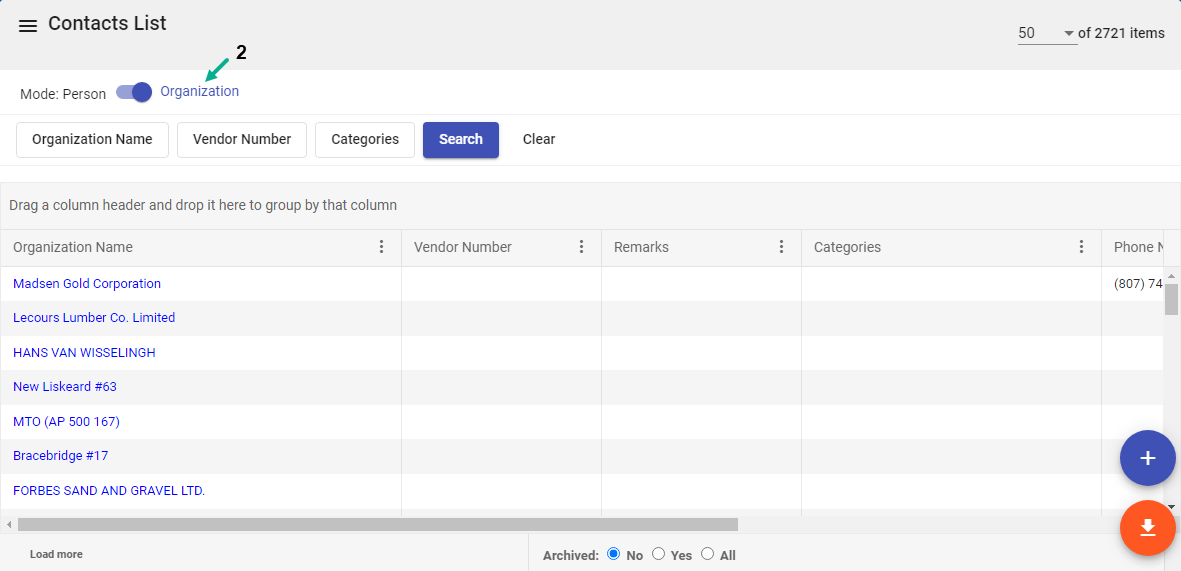Back to contacts